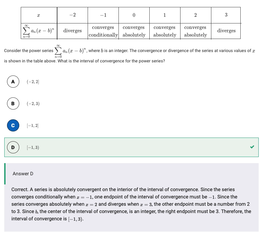 - 所以,收敛区间为 \([-1,1]\)