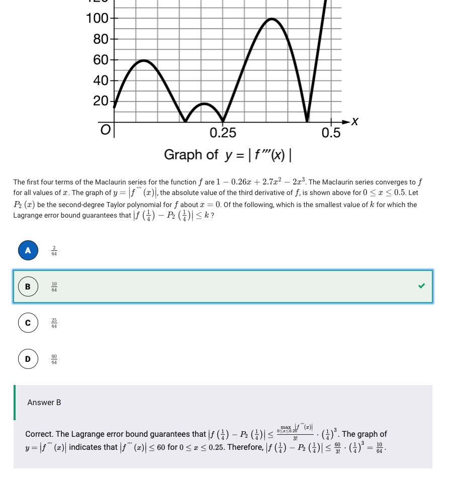 \[|R_k(x)| \leq \max \bigg|\frac{f^{(k+1)}(\xi)}{(k+1)!}(x-c)^{k+1}\bigg|\]