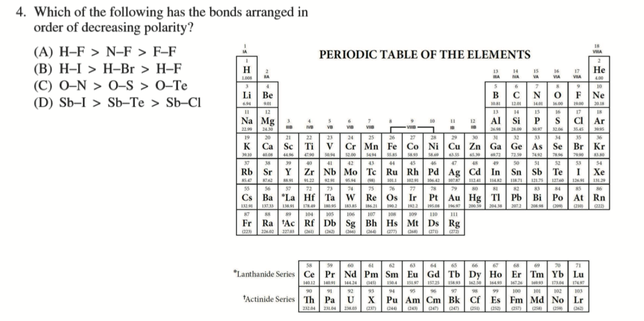 在 FRQ 中,应回答 “The \(\ce{XXX}\) molecule is nonpolar because all of the bond dipoles in the molecule have been cancelled out.”