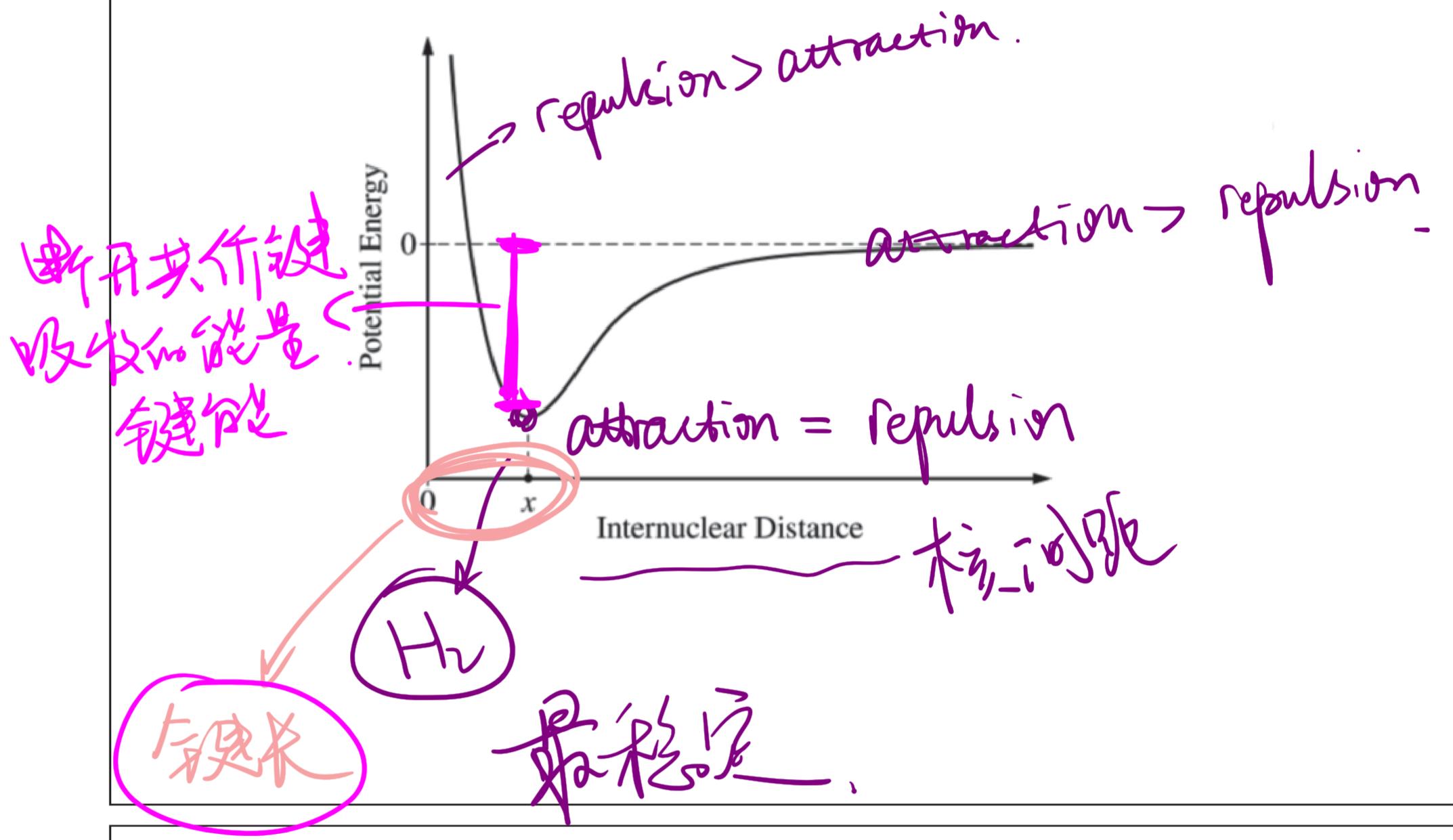 - 在图示最低点,纵座标与上方势能零点的差值为键能,横座标为键长