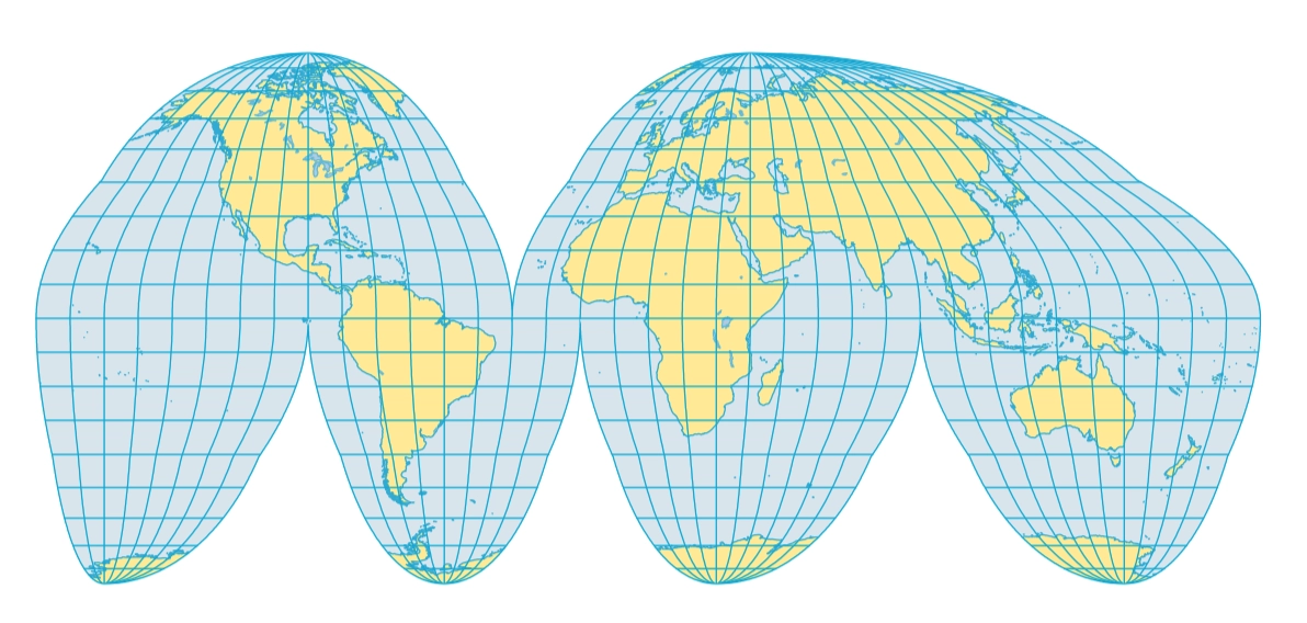 - Projection 投影 将地球表面的位置转移到平面地图上的方法