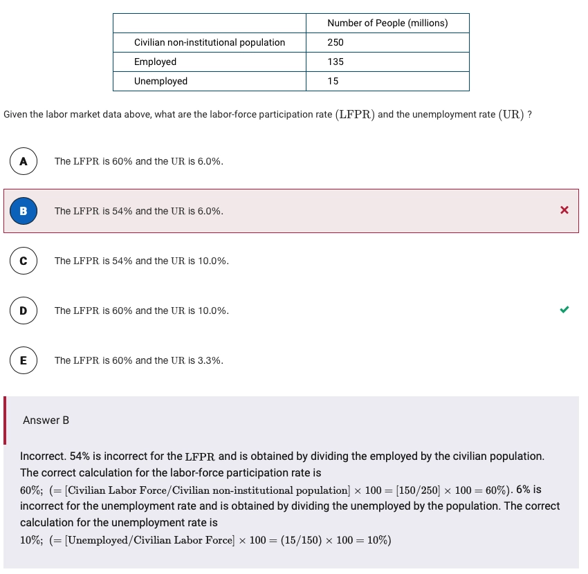 - \(\frac {\text{Unemployed Population}}{\text{Labor force}}\)