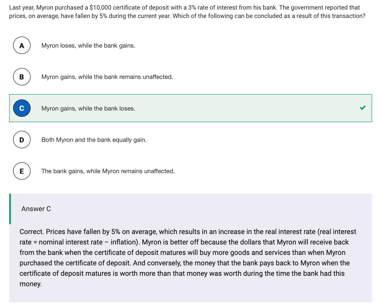 - Fisher Effect: Real Interest Rate = Nominal Interest Rate - Inflation Rate