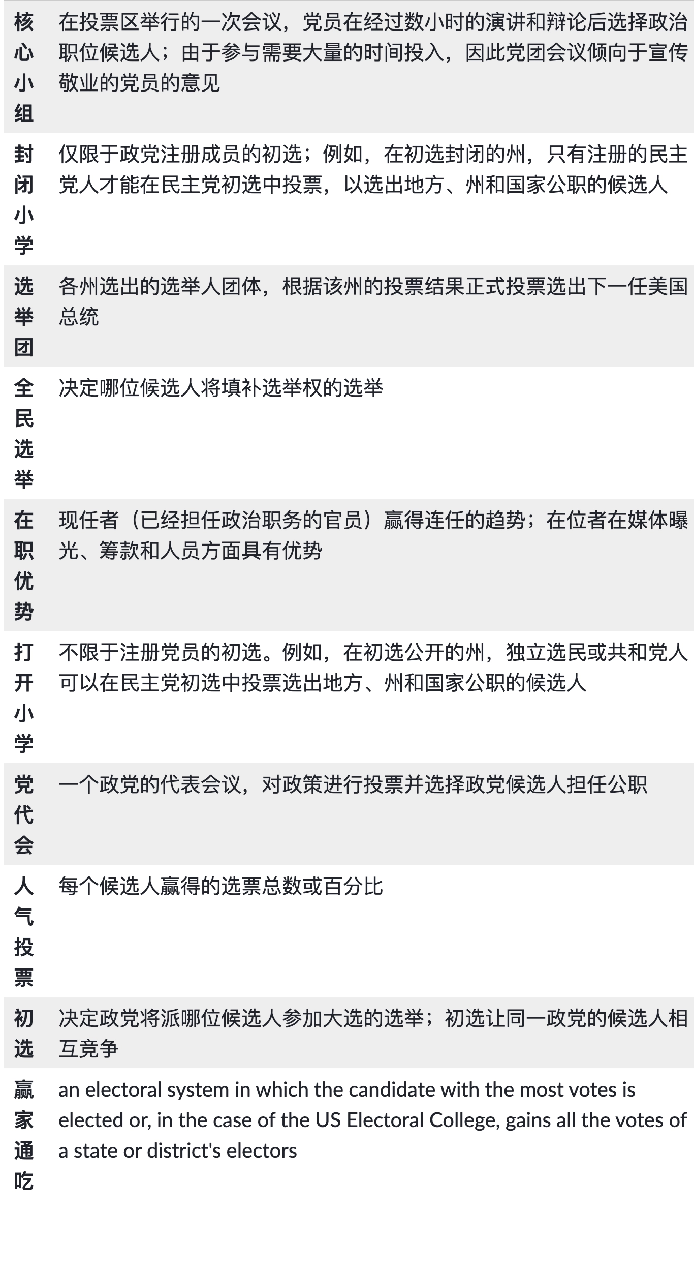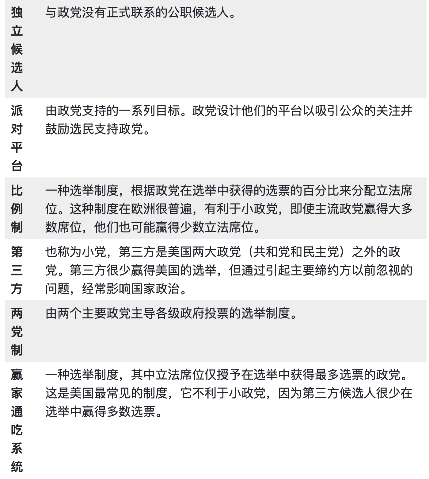 - 倡议(Initiative)是一个允许公民绕过州立法机构,将拟议法律付诸投票的过程。一些州甚至允许公民在选票上进行宪法修正案。