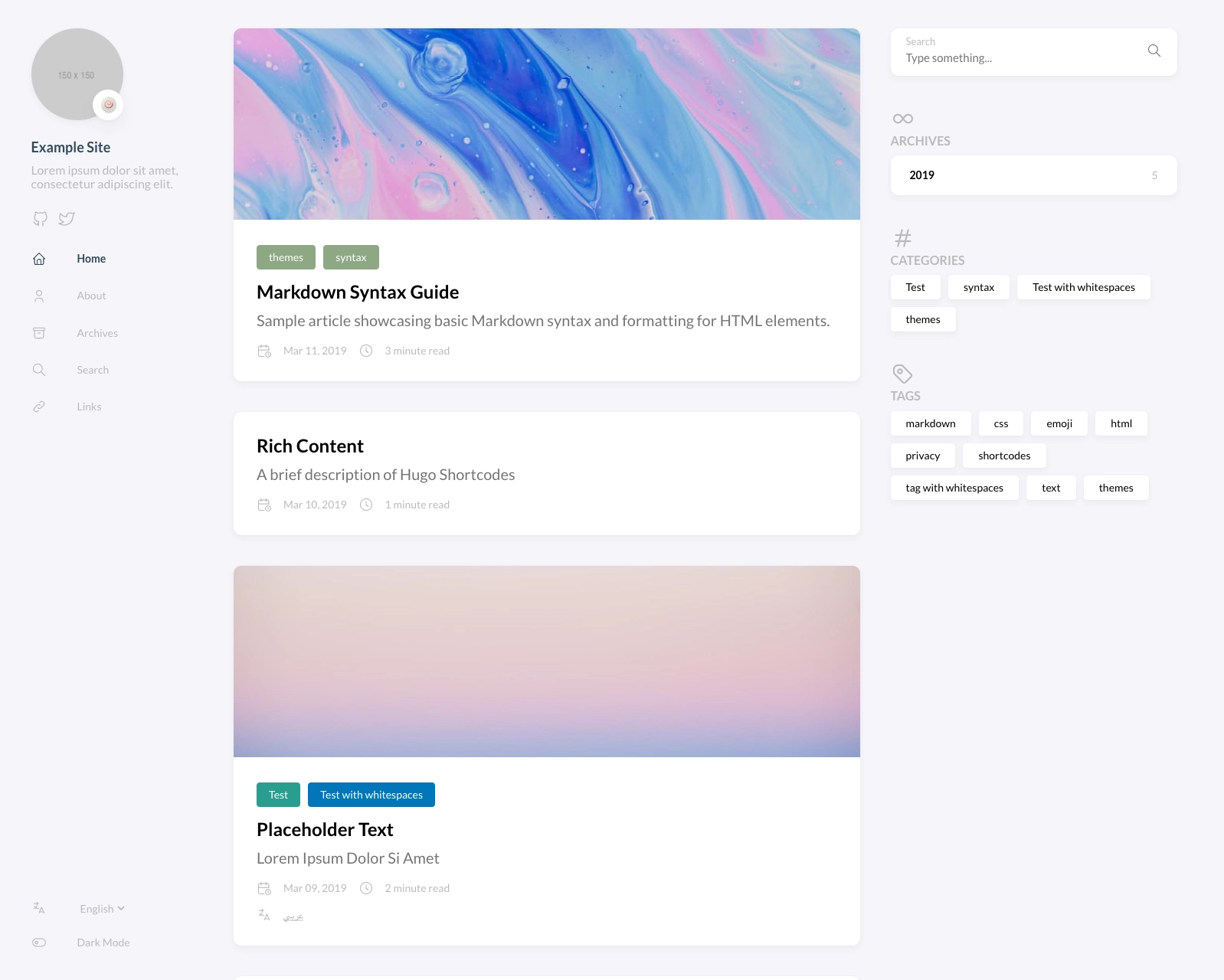 ### To remove about, archive and search page menu item, remove `menu` field from their FrontMatter