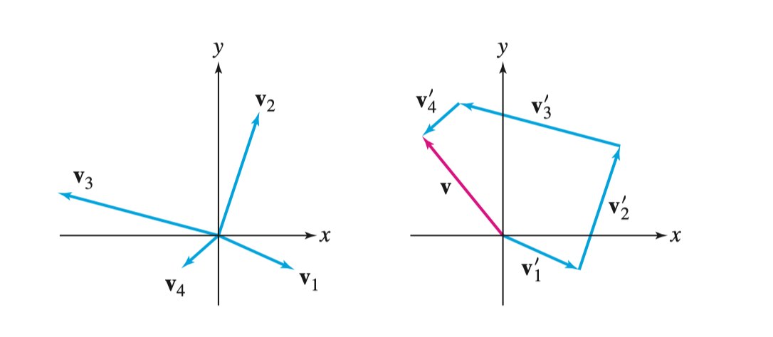 对于多个向量的加法如图所示(这一性质使得向量可以非常轻松的构造复杂运动的参数方程)