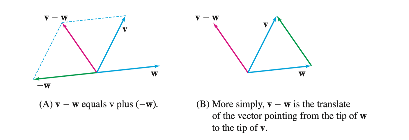 Shortcut: \(\mathbf{A} - \mathbf{B}\) 是从 \(\mathbf{B}\) 出发指向 \(\mathbf{A}\) 的向量,谁被减从谁出发