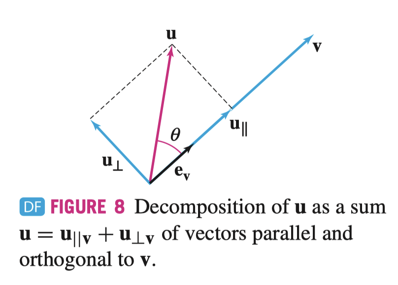 我们还可以通过正交分解向量 \(\mathbf{u}\) 定义 \(\mathbf{u}_{\perp \mathbf{v}}\) 如下