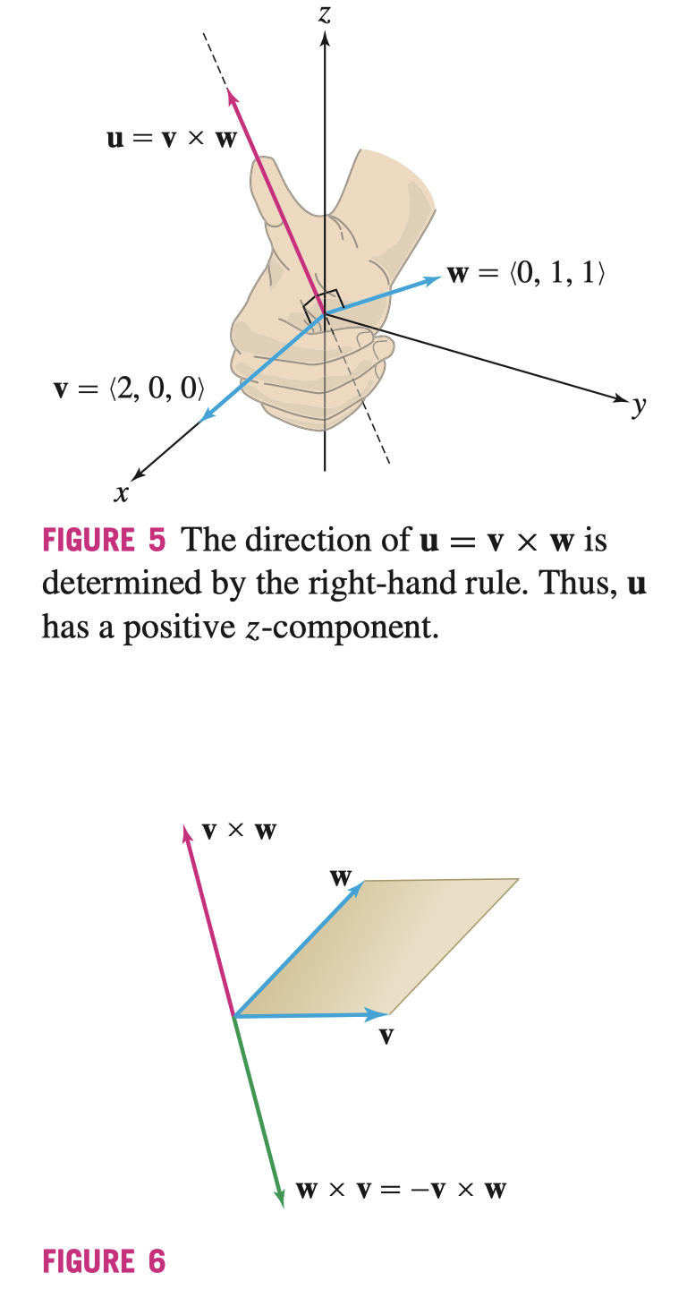 - \(\mathbf{v} \times \mathbf{w}\) 正交于 \(\mathbf{v}\) 和 \(\mathbf{w}\)